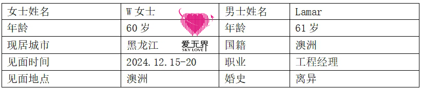 跨越重洋,黑龙江60岁的W女士和澳洲61岁的工程经理Lamar于悉尼赴一场期待已久的约。